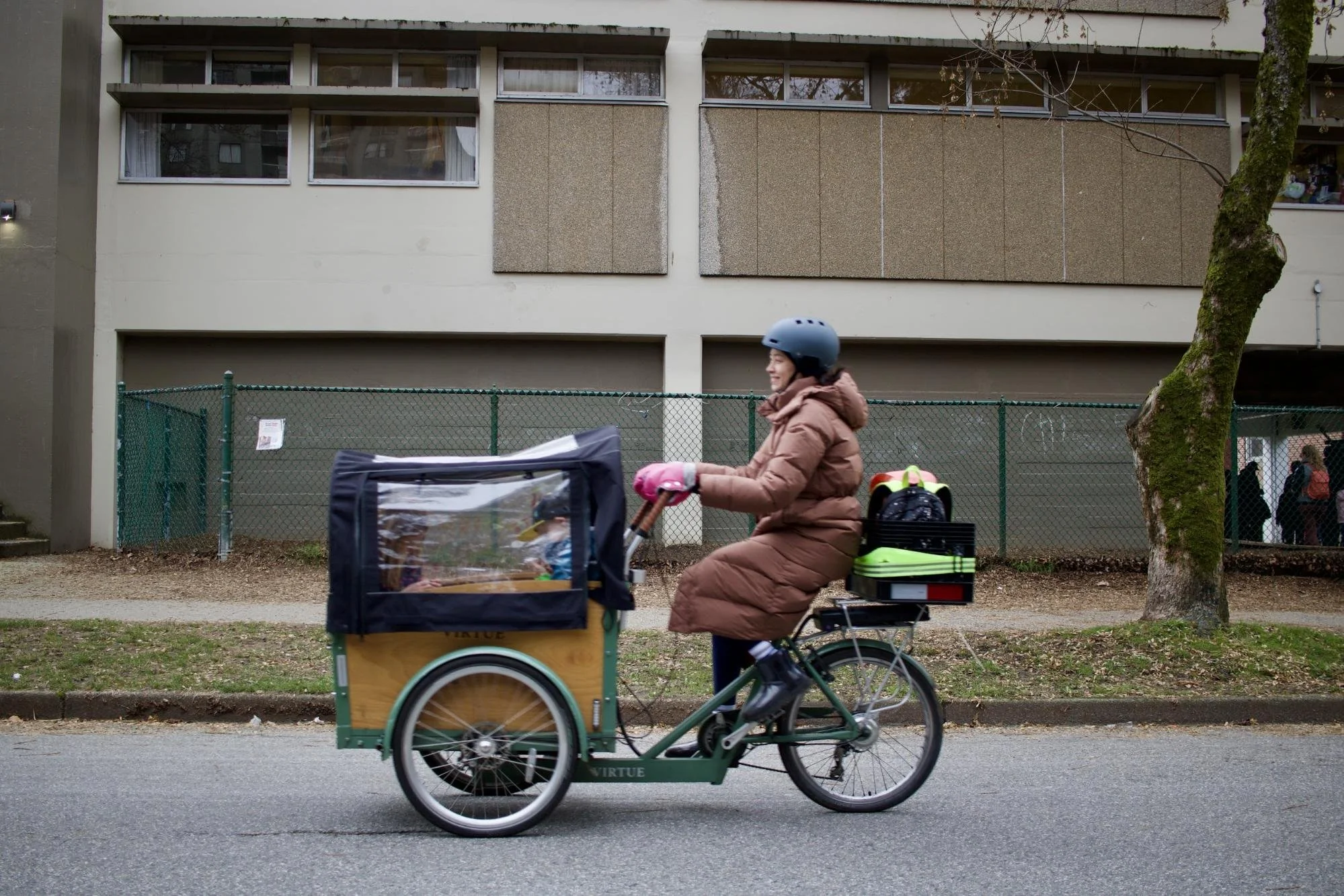 A woman riding a cargo bike. Photo taken by Nicole Roach.