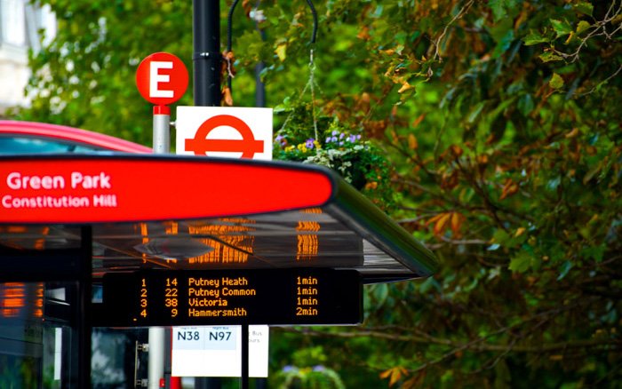 TfL Countdown Timers at bus stop in London, U.K. (photo via TfL Webpage).