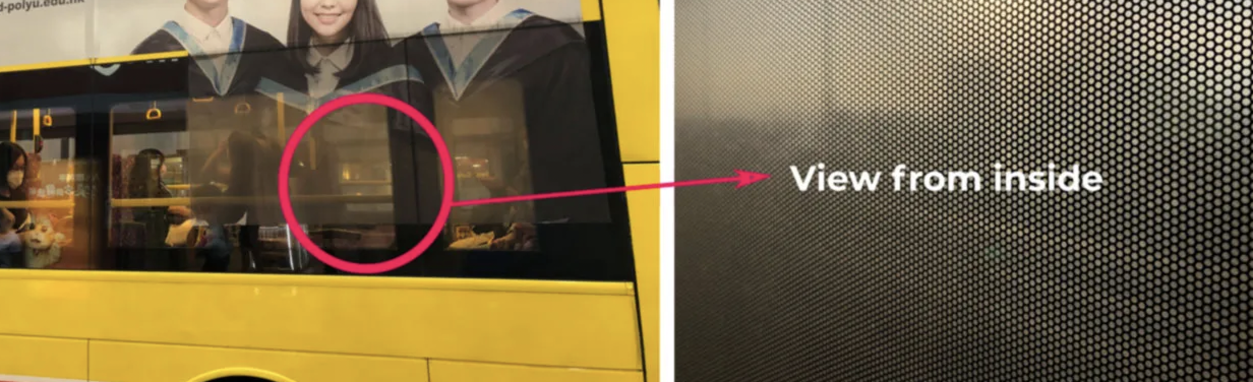 Another factor that impedes visibility on buses is poorly placed advertisements that block a bus’s windows, such as the ads that wrap the exterior of a bus in self-adhesive perforated film. This is important because women are often invested in maintaining a sightline of the environment outside of the bus - the space they will be stepping into once they get off the bus. These window-blocking advertisements can impede their monitoring of this external environment.