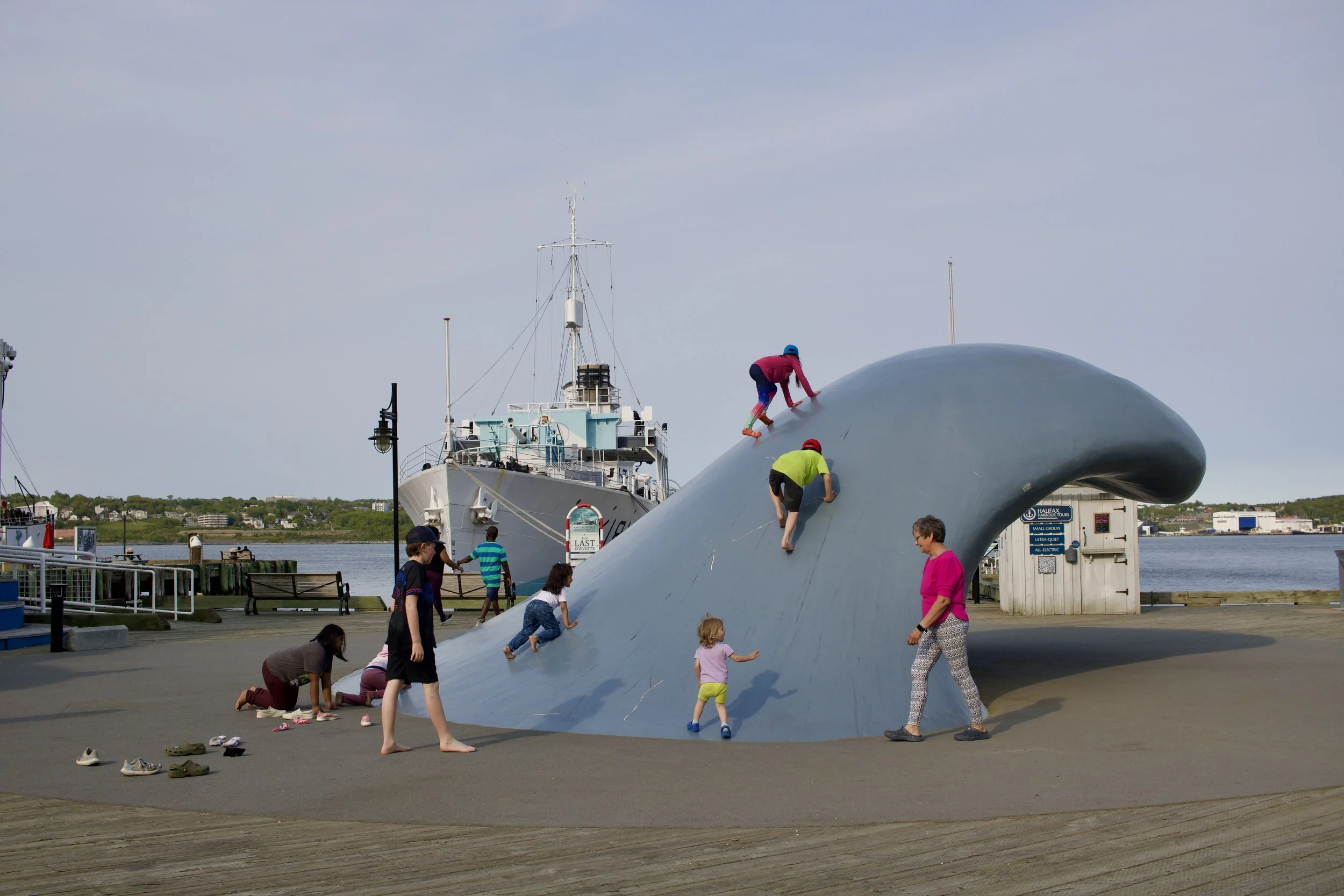 Children playing on “The Wave” art installation despite the prominent “do not climb” signage (photo taken by Nicole Roach in Halifax, Nova Scotia).