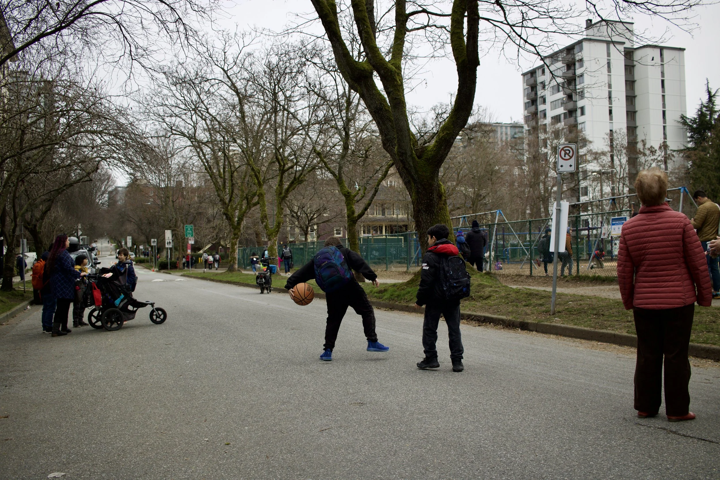 Kids playing in year-round Comox School Street (photo taken by Nicole Roach in Vancouver, British Columbia).