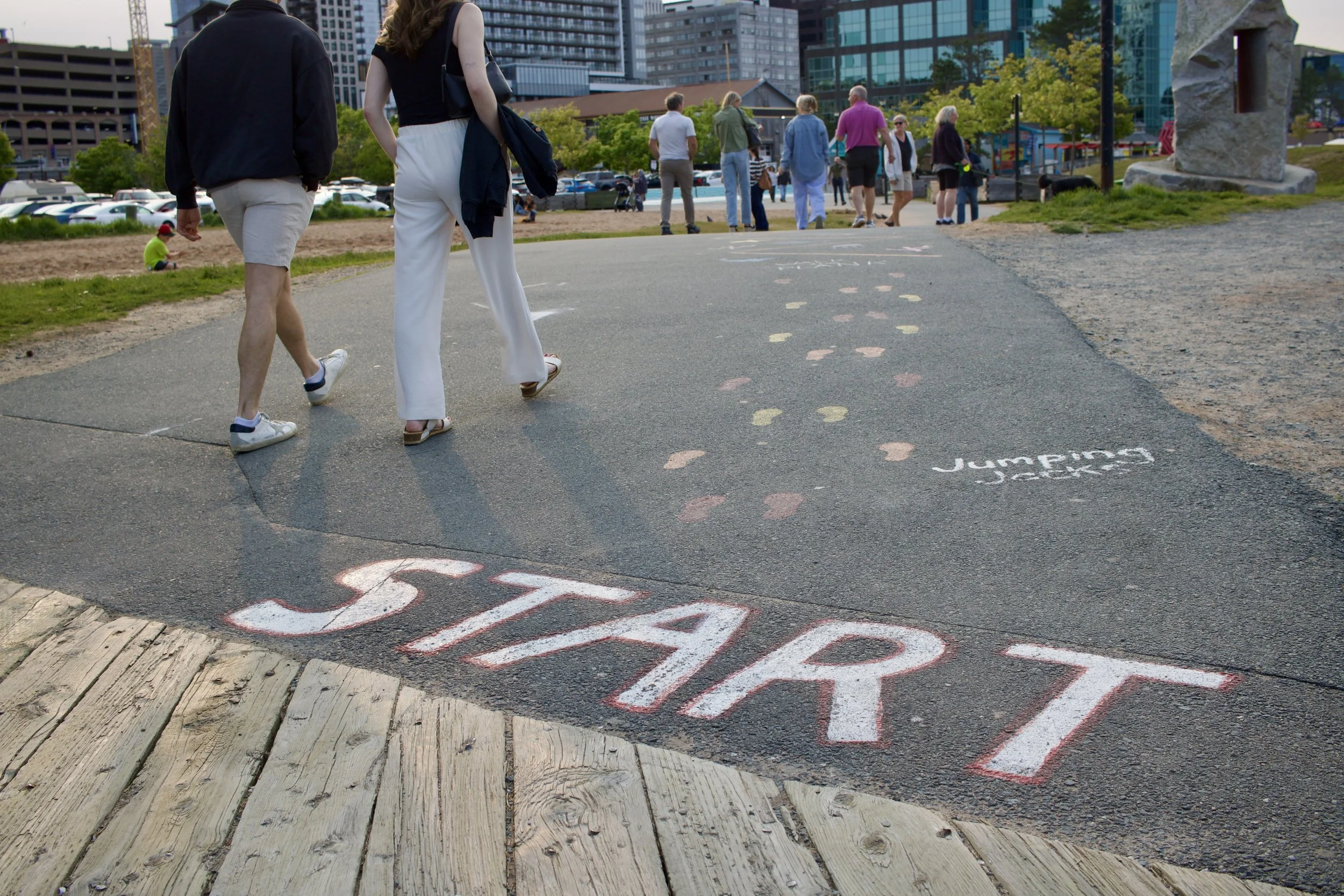 Start line art along a paved path (photo taken by Nicole Roach in Halifax, Nova Scotia).