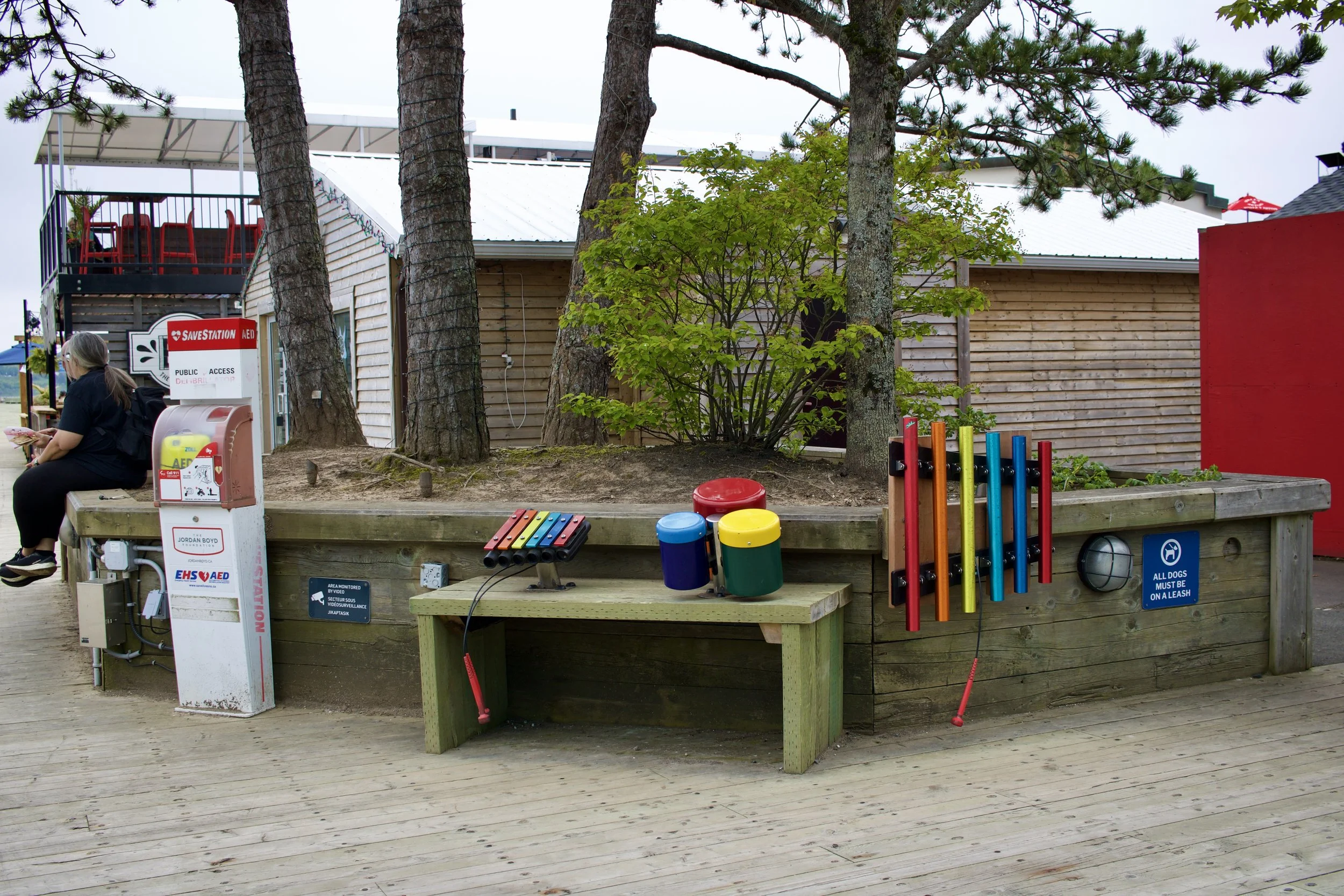 Colourful instrument installation along waterfront path (photo taken by Nicole Roach in Halifax, Nova Scotia).