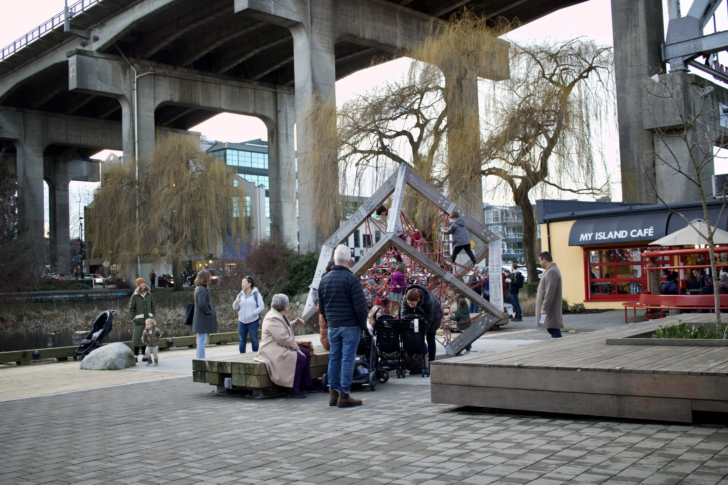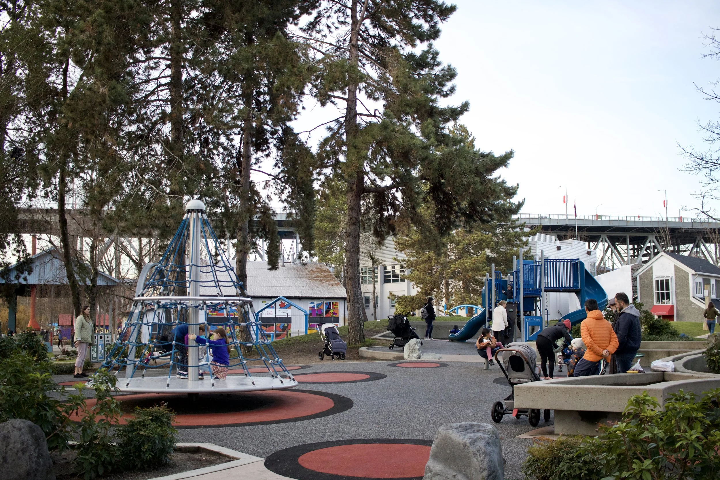 Kids Market Courtyard playground with creative climbing structure on Granville Island (photo taken by Nicole Roach in Vancouver, British Columbia).