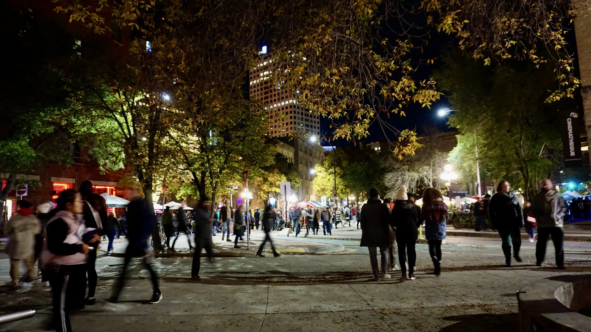 People gathered in the Exchange District during Nuit Blanche in Winnipeg, Manitoba (photo by Nicole Roach, 2019)