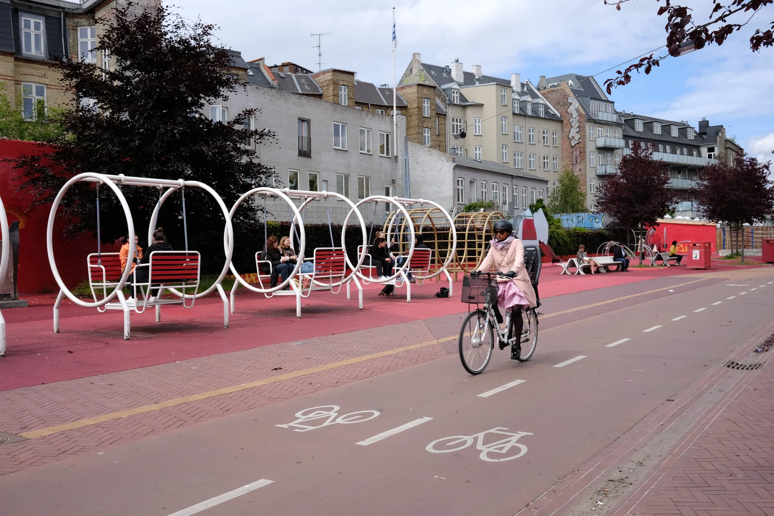 Teen girls want spaces that are more than just for movement, they also want to be social and creative in their activities. The group expressed to White Arkitekter that to increase their desire for cycling, they’d want a venue to pedal to, where they can make pit stops to talk. Infrastructure that allows them to pedal beside each other for conversations, without feeling like they are “in the way” of fast, recreational cyclists (which are predominantly men). Placing installations and parks along wide and protected bike lanes is one way to meet teen girls' needs to encourage activity.