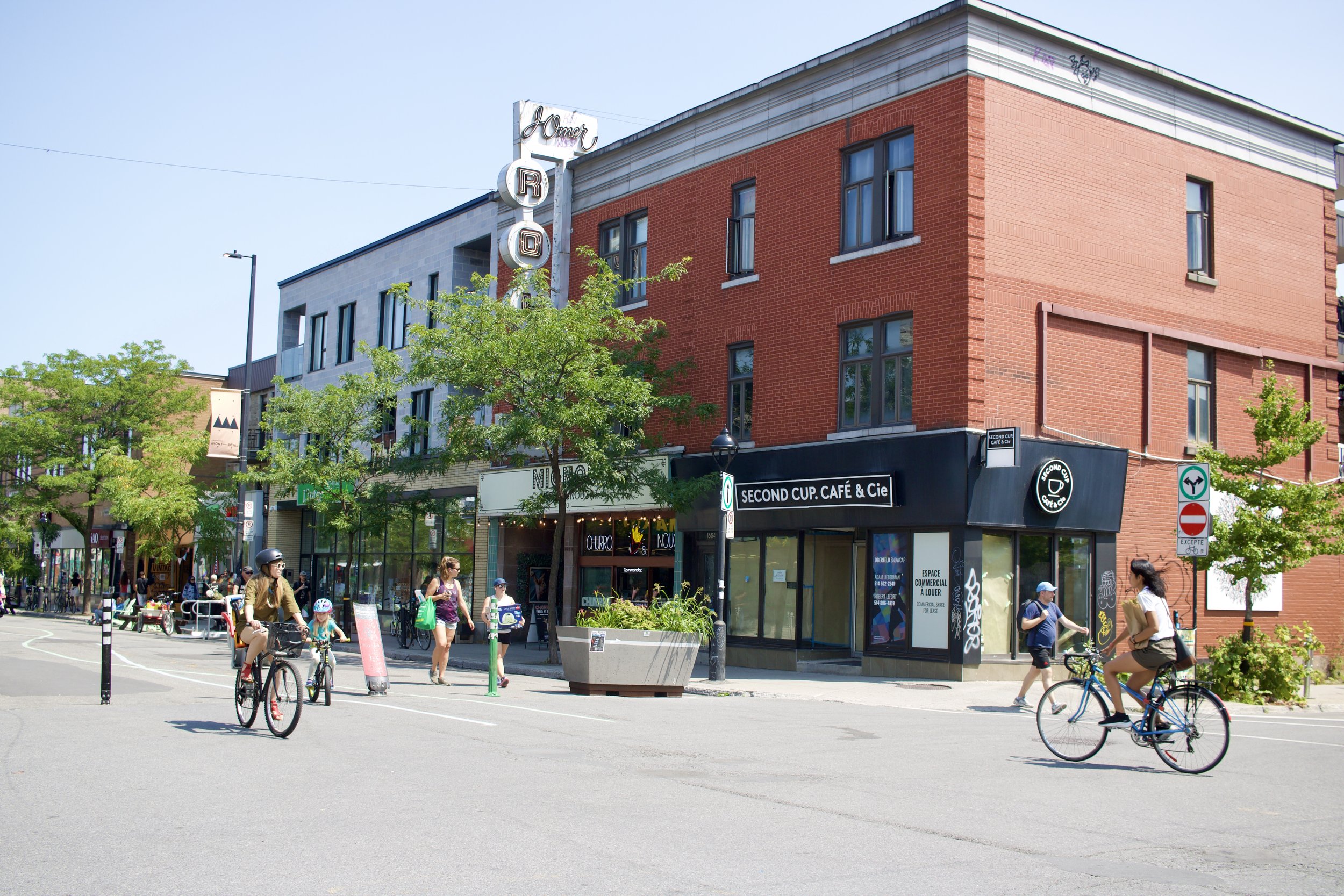 Women, children, and others enjoying an open Mont-Royal Avenue in Montréal, QC (photo by: Nicole Roach).