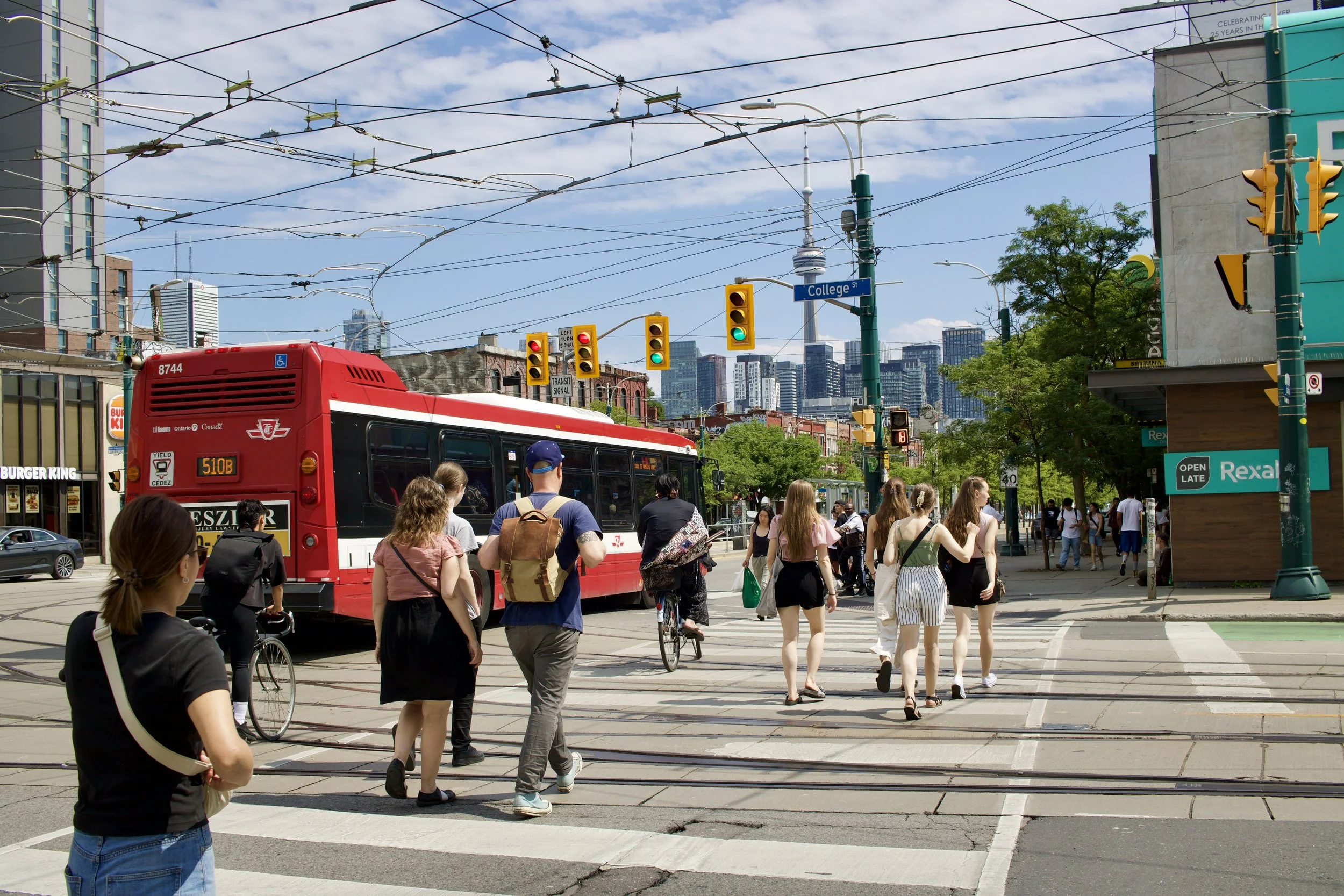 People crossing intersection at Spadina and College in Toronto, ON (photo by: Nicole Roach).