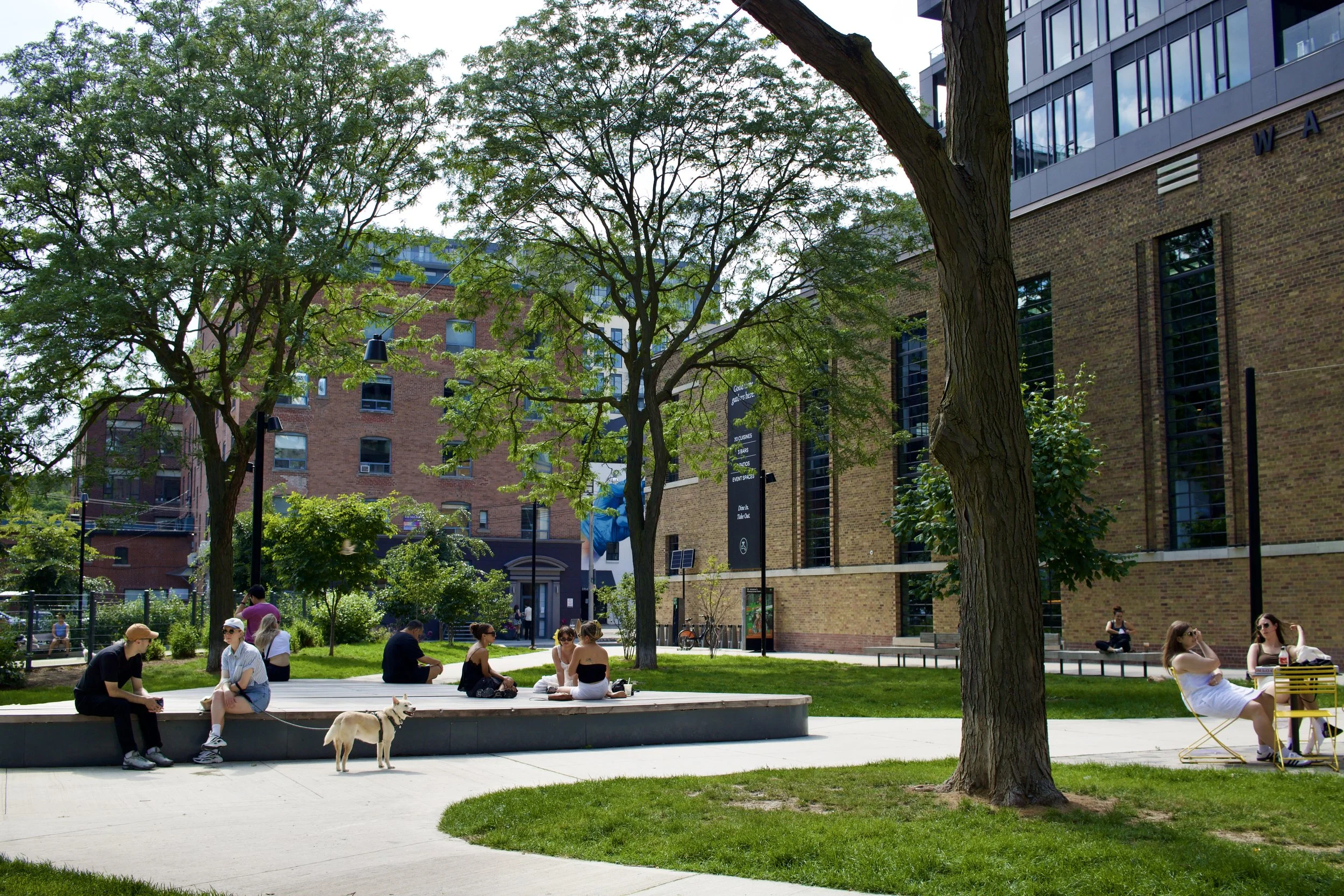 People enjoying diverse public seating options in St. Andrews Playground Park in Toronto, ON (photo by: Nicole Roach).