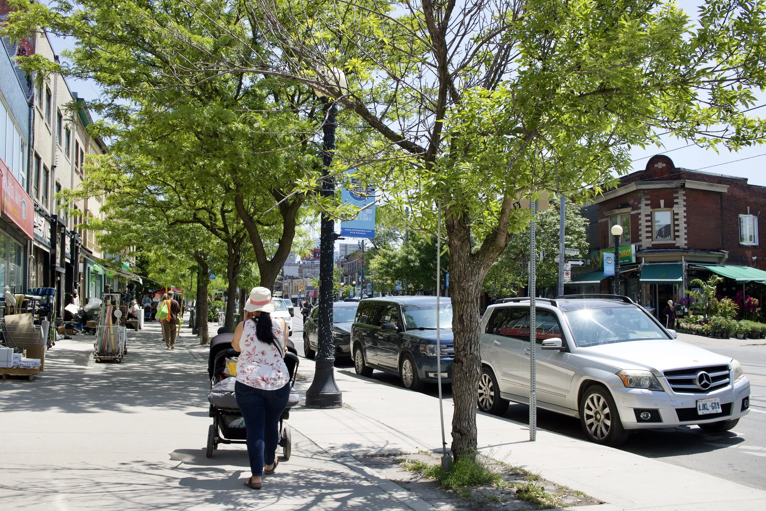 A woman pushing a stroller in Toronto, ON. Photo taken by Nicole Roach.