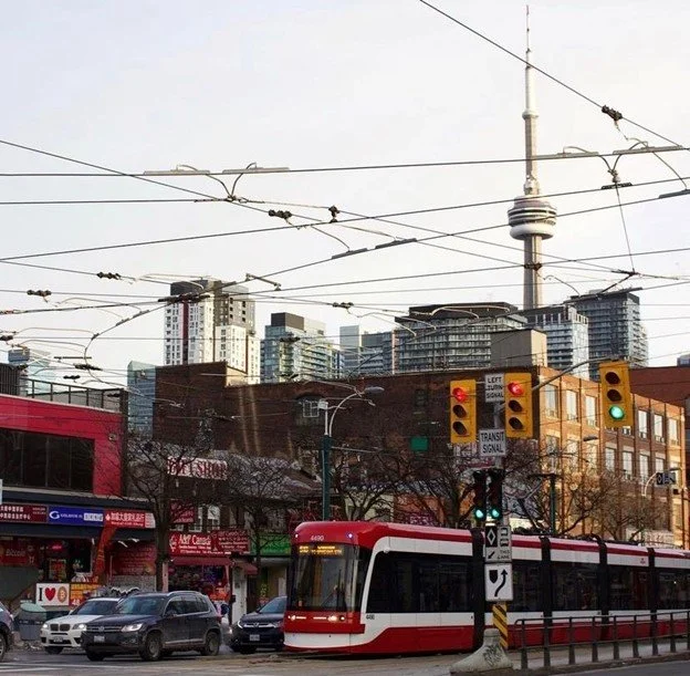 Source: Nicole Roach. TTC Tram Moving through Spadina Chinatown, Toronto.