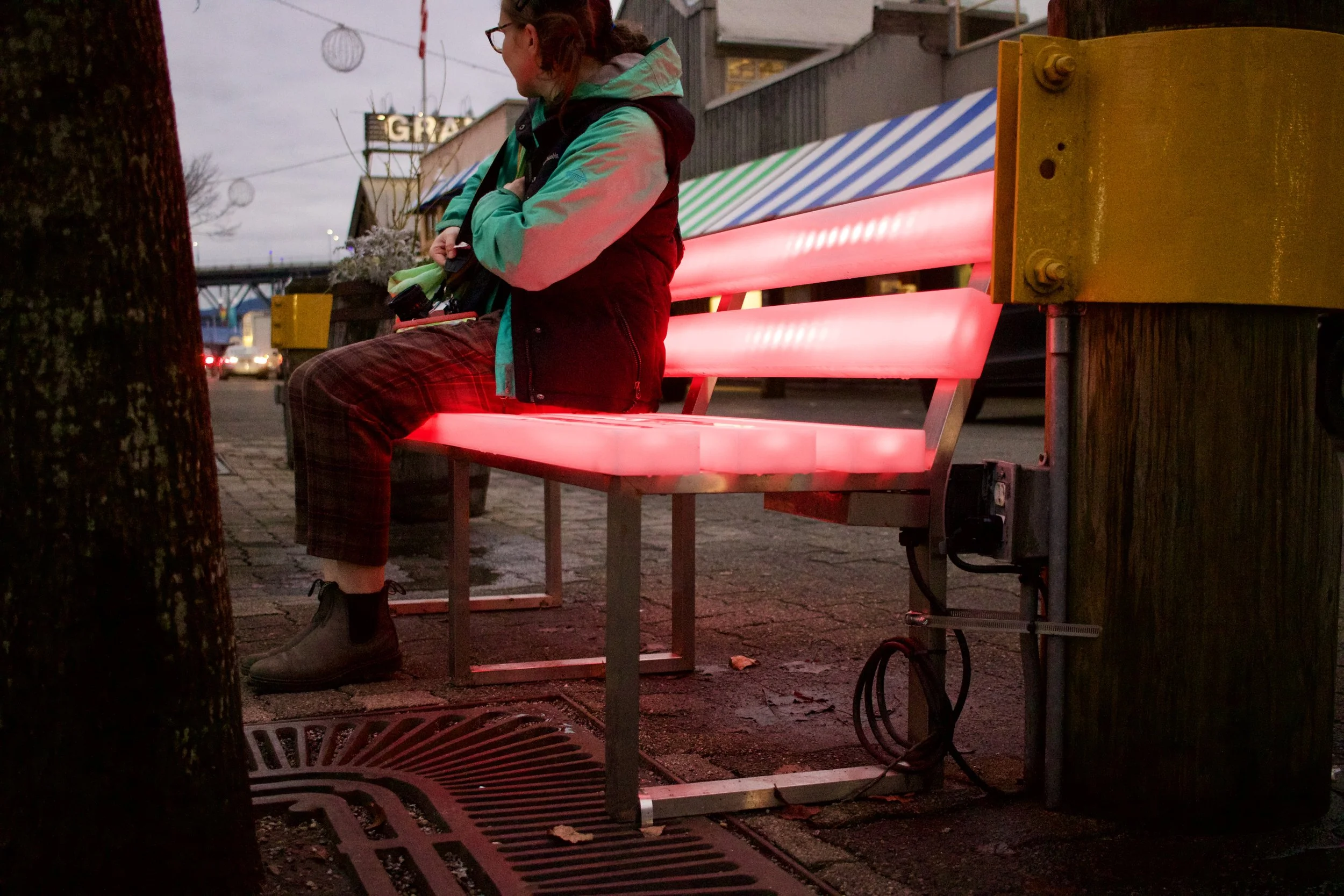 Light-up bench (Vancouver, BC, taken by Nicole Roach).