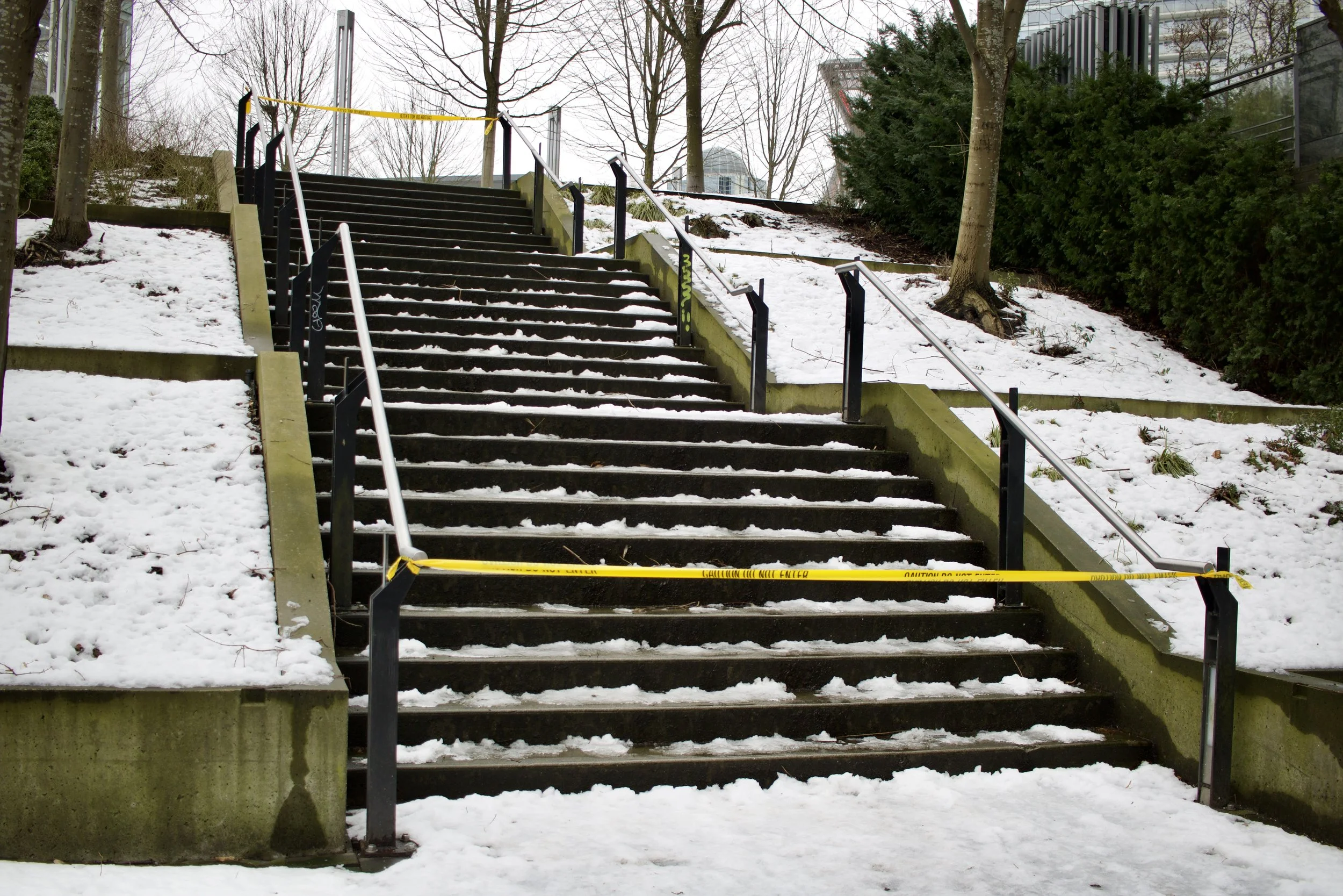 Stairs closed off due to inadequate snow clearance (Photo by: Nicole Roach, Vancouver, BC)