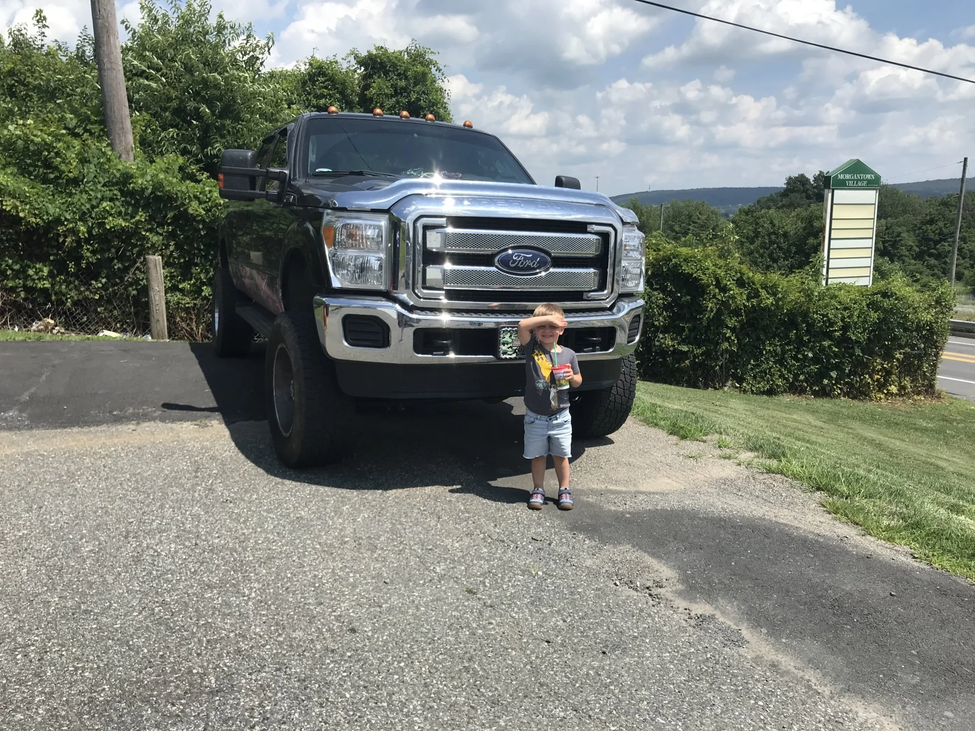 Child standing in front of Ford truck (Photo by Angie Schmitt via CityLab, 2021)