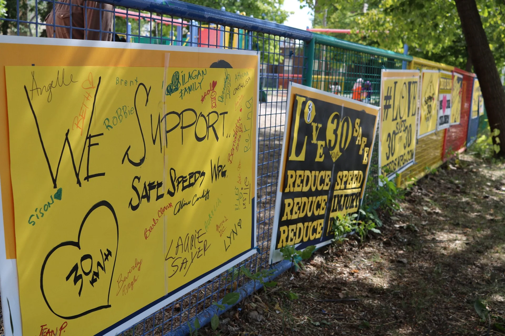 Signs showing support for the Love 30 campaign (Photo by: Nicole Roach, Winnipeg, MB, 2020)